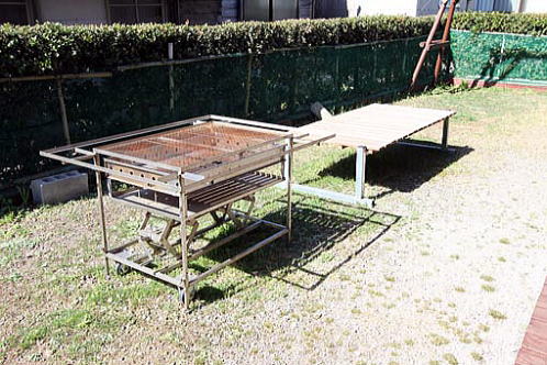 庭で20名程度のバーベキューパーティーが可能です。 外流しがあるので重宝しています。 バーベキューコンロは会社オリジナル商品で炭の位置がが上下移動するので火力調整が可能です。 意外と威力を発揮するんですよ。 |