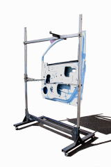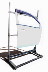 大きなハッチやドアも連れる高強度の塗装スタンドです。 上段メインフレーム、下段サブフレームの2段構成です。 メインフレームの高さはすきな位置で固定可能です。 吊下げハンガーにドア、フェンダー、ボンネット等を吊下げます。 サブフレームのサブアームはスライド式ですので、ボンネット等を塗装しやすい位置に固定すること が出来ます。 サブアームにバンパー等を置く事も出来ます。 |